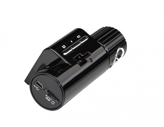 Но, конечно же, главная особенность гаджета - это подвижная камера. Ее можно повернуть на 200 градусов по вертикали. Это - для удобства съемки. Например, для того, что зафиксировать ситуацию в салоне. Очень широкий угол обзора захватывает не только пространство перед автомобилем, но и соседние полосы дороги. При этом картинка получается без "выпуклостей", чем обычно "грешат" широкоугольные объективы.