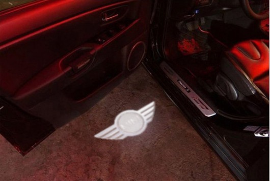 Подсветка с логотипом MINI — новый нестандартный вариант тюнинга! В дверь авто устанавливается миниатюрный проектор, который выводит на асфальт цветное изображение логотипа Мини. Картинка появляется, когда вы открываете дверь, и исчезает, когда дверь закрывается. Выглядит это очень стильно и необычно.