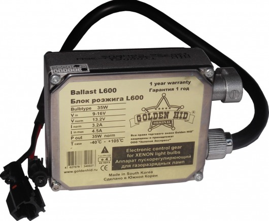 Блок розжига Golden HID L600 — балласт в толстом корпусе с обманкой. Благодаря обманке бортовой компьютер современных автомобилей не выдает ошибку и ксенон работает без проблем. Так что, если у вас Audi, BMW, Mercedes, Volvo, Volkswagen, Peugeot, Citroen или Renault, лучше выбирать именно эту модель.