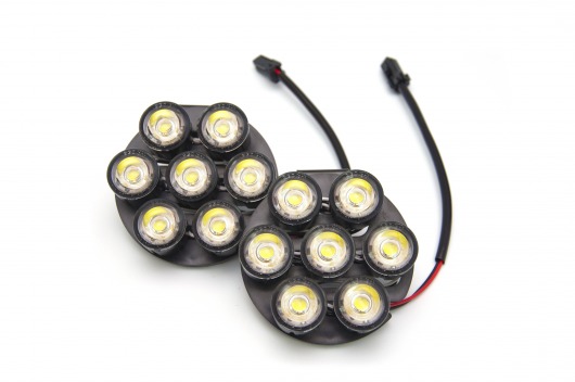 Значительное преимущество огней в том, что они подключаются напрямую к аккумулятору, что исключает ошибки бортового компьютера. Универсальное крепление и все необходимые провода есть в комплекте поставки.