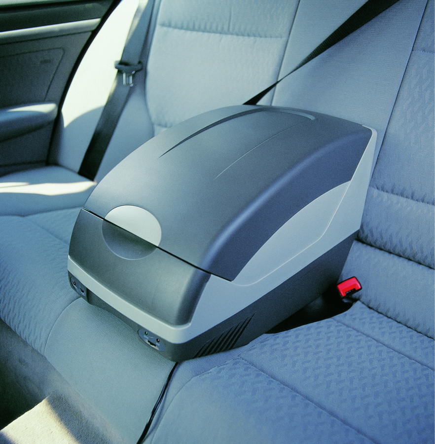 Термоэлектрический автомобильный холодильник WAECO BordBar TB-15 очень удобно использовать в машине благодаря его форме. Этот автохолодильник выполнен в виде подлокотника, поэтому он без проблем расположится как в небольшом авто, так и во внедорожнике. Кроме того, холодильник можно поставить и на переднее сиденье — мешать он вам точно не будет. Кроме формы, удачным решением является возможность закрепить контейнер на сиденье с помощью ремня безопасности.