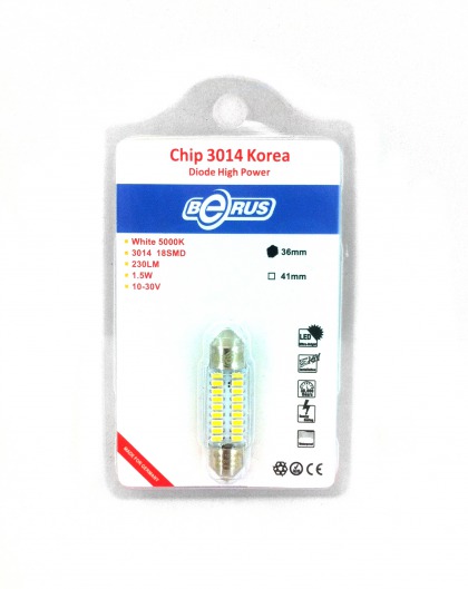 Светодиодная софитная лампа 1036 1.5W предназначена для освещения салона. Состоит из 18 ярких диодов. Лампа намного ярче обычных галогеновых, отлично освещает дорогу ночью и  в дождливую погоду. Цвет свечения со временем не изменяется. Служит такая лампа очень долго, при этом потребляет незначительное количество энергии.