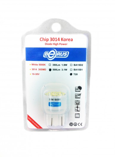 Светодиодная лампа T20 3.1W предназначена для установки в противотуманные фары и указатели поворотов. Она намного ярче обычных галогеновых ламп, отлично освещает дорогу даже в самую непроглядную темноту и сильный ливень. Цвет свечения со временем не изменяется. Служит такая лампа очень долго, при этом потребляет незначительное количество энергии.