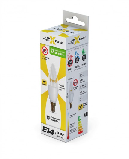 Светодиодная лампа X-Flash CANDLE E14 3W предназначена для общего и декоративного освещения (торшеры, люстры, бра с открытым верхом). Имеет прозрачную колбу в форме пламени свечи. По форме, цоколю и размерам лампа абсолютно соответствует компактным люминесцентным лампам и лампам накаливания.