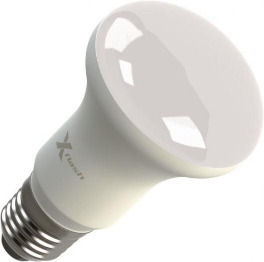 Светодиодная лампа X-Flash FUNGUS E27 8W выполнена в форме лампы-рефлектора с матовой колбой, корпус изготовлен из теплорассеивающей пластмассы, что значительно повышает ее безопасность. По форме, цоколю и размерам led лампа соответствует аналогичным люминесцентным лампам и лампам накаливания. Она имеет алюминиевый радиатор, который эффективно снижает температуру внутри лампы. Данная модель рассчитана на напряжение 220 В. Мощность диодной лампы X-Flash — 8 Вт., яркость — 650 Лм, а температура свечения – 3000 K (это желтый свет).