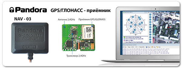 Работа GPS/ГЛОНАСС-приемника Pandora NAV-03 с Pandora 5000New также осуществляется по универсальному беспроводному интерфейсу на 2,4ГГц и не требует прямого подключения к базовому блоку системы. Это позволит расположить приемник в местах наилучшего прохождения спутникового сигнала, без необходимости прокладывать провода от приемника до системы. Также "по воздуху" осуществляется и интеллектуальное управление режимами работы и энергосбережения GPS/ГЛОНАСС-приемника, что позволило с одной стороны сократить энергопотребление, с другой - забыть о таких параметрах как время "холодного" и "горячего" старта.