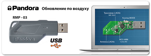 Изменять параметры работы Pandora 5000New с компьютера или ноутбука, теперь можно не только используя кабель miniUSB, но и "по воздуху", что особенно актуально, когда необходимо скорректировать настройки системы, уже установленной на автомобиль. Для связи компьютера с базовым блоком системы по беспроводному интерфейсу служит программатор Pandora RMP-3, с помощью которого можно не только настроить параметры системы, но и обновлять П.О.