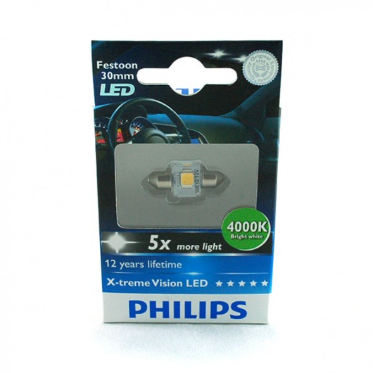 Вопросы и отзывы про Светодиодная лампа C5W Philips X-Treme Vision 30mm 4000K (теплый белый свет)
