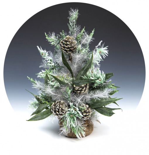 Оригинальная настольная елка в мешочке «Искристая фантазия» — это потрясающая новогодняя композиция из белой искусственной елки, зеленых листочков и настоящих еловых шишек. Стильно и необычно. Такая елочка станет замечательным украшением офиса в преддверии Нового года, создаст праздничную и домашнюю атмосферу. Искусственная ель высотой 0,46 м помещена в декоративный мешочек, что добавит еще больше оригинальности в оформление праздничного интерьера.