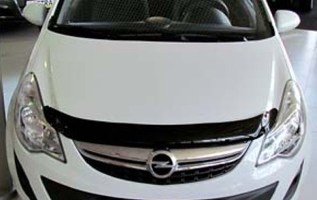 Дефлектор капота для Opel Corsa D — это щиток из орг.стекла темного цвета, который крепится на переднюю часть капота. Благодаря тому, что дефлектор разработан специально для  Opel Corsa D от 2006 г.в., устанавливается он легко и быстро, при этом сверлить кузов вам не нужно. По форме же накладка полностью повторяет контуры капота. Данная модель прочна и долговечна: она надежно крепится, не боится коррозии, экстремальных температур и серьезных перегрузок.