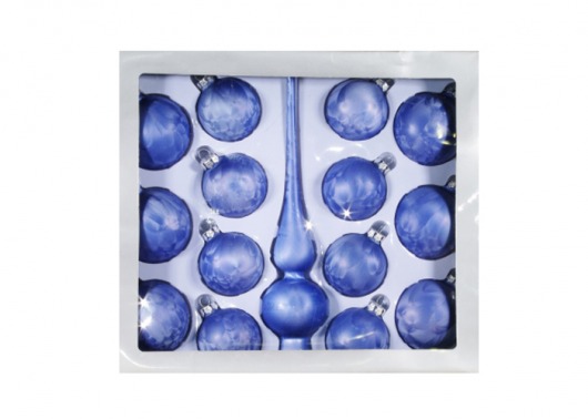 Набор стеклянных елочных шаров с верхушкой PeneriGifts (синие, 15 шт.)