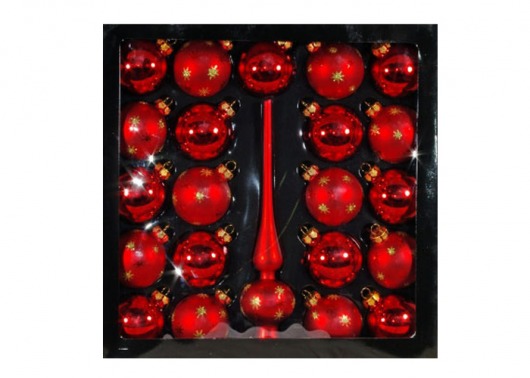 Набор стеклянных елочных шаров с верхушкой PeneriGifts (красные, 22 шт.)