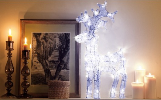 Световая фигура выполнена в виде красивого оленя с санями. Размер оленя - 35x50x12 см, поэтому вы можете его поставить куда угодно: на праздничный стол, на полочку или под новогоднюю елочку. Заметьте - это не просто светодиодная гирлянда, а настоящее произведение искусства! 60 ярких светодиодов теплого белого цвета делают данную фигуру очень эффектной и ее трудно не заметить.