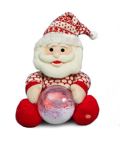Анимационная музыкальная мягкая игрушка Санта со снежным шаром подарит прекрасное новогоднее настроение вам и вашим детям. Высота игрушки — 23 см. Санта музыкальный и анимационный: как только вы нажмете на кнопочку на левой ноге игрушки, Санта начнет напевать праздничную песенку и забавно качать головой в такт. А в сноуболле весело закружатся снежинки и начнется маленькая метель. Представьте только, в каком восторге будут дети! Да и любой взрослый будет рад такому подарку.