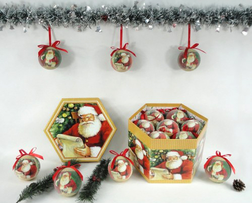 В набор PeneriGifts "Дед Мороз" входят 7 елочных шаров диаметром 7,5 см. Глянцево-матовые шарики с яркими разноцветными рисунками смотрятся нарядно и празднично и в то же время тепло и  уютно. Двух-трех таких наборов будет вполне достаточно, чтобы целиком нарядить комнатную елку. Шарики из пластика очень легкие, и под ними не прогнутся даже самые тонкие ветки.