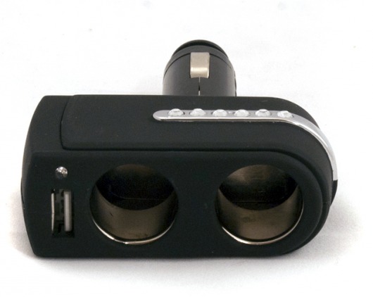 Разветвитель прикуривателя на 2 гнезда + USB (INTEGO, черный)