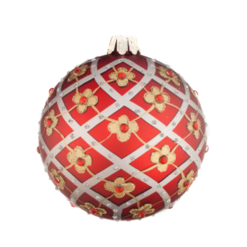 Новогодний шар с серебряными узорами красного цвета сделан из стекла и в диаметре составляет 8 см. Такие стеклянные шары действительно украсят и сделают неповторимой вашу новогоднюю елку.