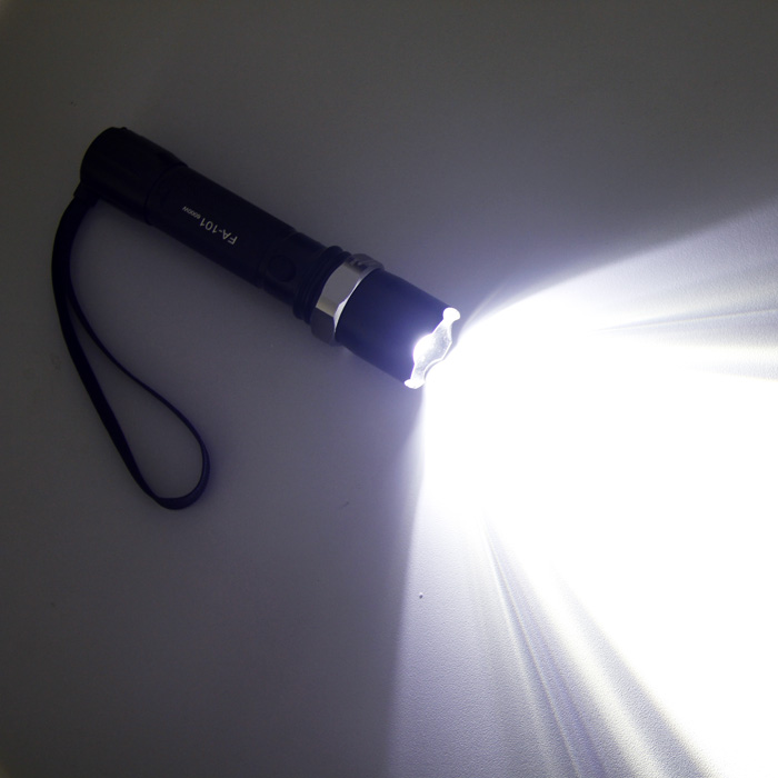 Cветодиодный фонарь FA-101 — надежный и яркий карманный фонарик мощностью 6000W. Благодаря небольшим размерам вы сможете носить этот ручной светодиодный фонарь в сумке, в кармане или в руках. Возьмите с собой эту модель, и темнота больше не застанет вас врасплох. FA-101 — очень яркий портативный фонарь (600 люмен), в котором можно регулировать зум.