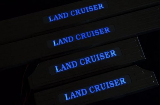Накладки на пороги с подсветкой для Toyota Land Cruiser 200 органично впишутся в дизайн вашего автомобиля. Этот эффектный элемент интерьера появился относительно недавно, так как накладки с подсветкой не входят в заводскую комплектацию. Размеры накладок подобраны с учетом размеров порогов Toyota Land Cruiser 200 от 2007 г.в. Они изготовлены из нержавеющего металла высокой прочности. Накладки на пороги оснащены специальными полосками, которые обеспечивают плотное соприкосновение ноги и порога, тем самым облегчая посадку в машину.