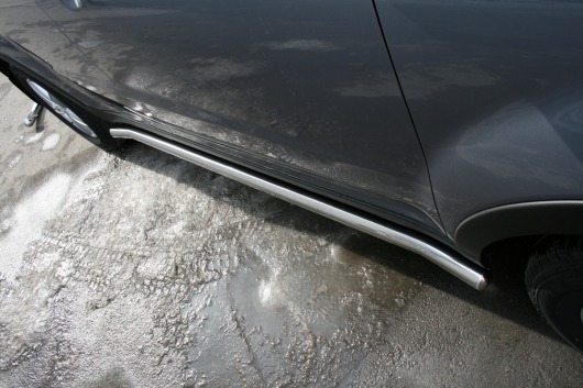 Пороги на SsangYong Actyon – это боковые подножки из нержавеющей стали диаметром 60 мм, которые позволяют более комфортно входить и выходить из салона автомобиля. Подножки SsangYong Actyon очень прочные, надежные и долговечные: они не боятся коррозии, сколов и царапин и выдерживают большие нагрузки.