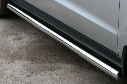 Пороги на Hyundai Santa Fe – это боковые подножки из нержавеющей стали диаметром 76 мм, которые позволяют более комфортно входить и выходить из салона автомобиля. Подножки Hyundai Santa Fe очень прочные, надежные и долговечные: они не боятся коррозии, сколов и царапин и выдерживают большие нагрузки.