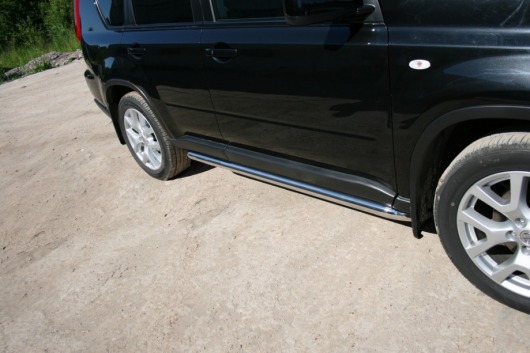 Боковые пороги-подножки сделаны специально для автомобилей Nissan X-Trail 2007-2012/2010 г.в. , поэтому устанавливаются достаточно просто и без повреждений корпуса. Помимо этого, стальные пороги-трубы для Ниссан Х-Трейл смотрятся очень стильно и эффектно. Они добавят вашему авто еще больше солидности и внушительности.