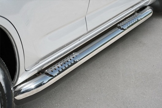 Пороги на Toyota RAV4 SWB – это боковые подножки из нержавеющей стали диаметром 76 мм, которые позволяют более комфортно входить и выходить из салона автомобиля. Подножки Toyota RAV4 SWB очень прочные, надежные и долговечные: они не боятся коррозии, сколов и царапин и выдерживают большие нагрузки.