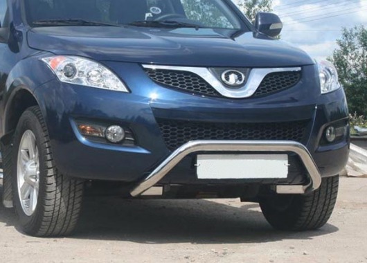 Защитная решетка переднего бампера предназначена для автомобилей Great Wall Hover H5 от 2010 г.в. Вам не придется подгонять передний кенгурятник под размеры кузова вашего авто. И с монтажом проблем не возникнет: установка кенгурятника Great Wall Hover H5 производится в штатные отверстия, а значит, необходимость сверлить кузов отпадает.