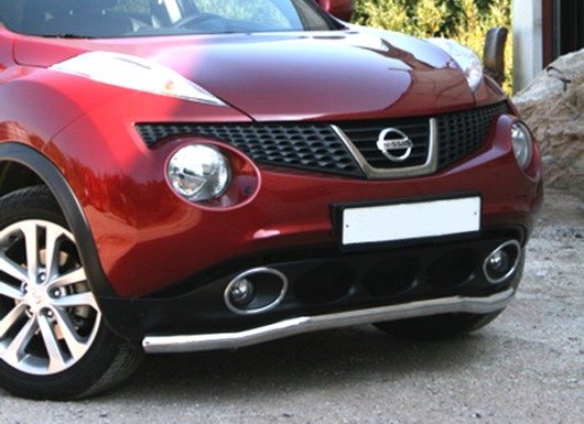 Труба на бампер Nissan Juke защищает передний бампер автомобиля от различных механических повреждений при мелких ДТП и неудачных парковках, а также незаменима при езде по бездорожью. А кроме этого, труба на передний бампер Ниссан Жук смотрится очень стильно и эффектно.