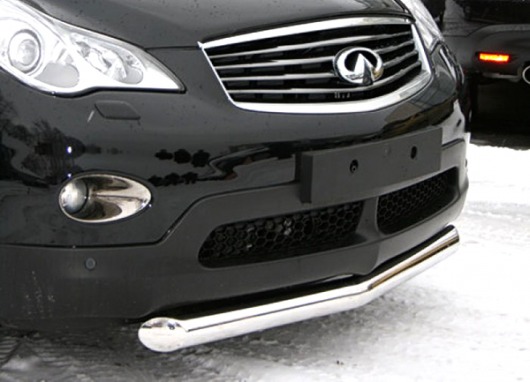 Труба на бампер Infiniti EX35 защищает передний бампер автомобиля от различных механических повреждений при мелких ДТП и неудачных парковках, а также незаменима при езде по бездорожью. А кроме этого, труба на передний бампер Инфинити EX35 смотрится очень стильно и эффектно.