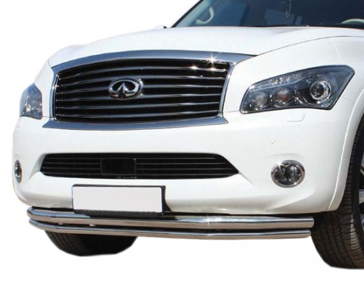 Защита переднего бампера для Infiniti QX56 – это двойная труба на бампер из нержавеющей стали диаметром 60/42 мм.