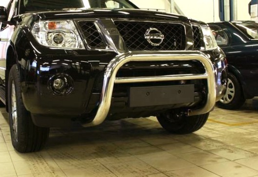 Передняя решетка Nissan Pathfinder (кенгурятник) – это защитная дуга на бампер из нержавеющей стали диаметром 76 мм.