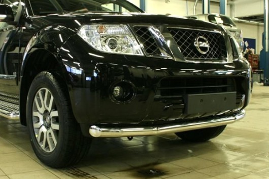 Защита переднего бампера для Nissan Pathfinder – это труба на бампер из нержавеющей стали диаметром 76 мм.