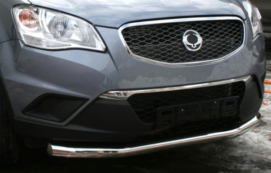 Труба на бампер SsangYong Actyon защищает передний бампер автомобиля от различных механических повреждений при мелких ДТП и неудачных парковках, а также незаменима при езде по бездорожью. А кроме этого, труба на передний бампер Санг Енг Актион смотрится очень стильно и эффектно.