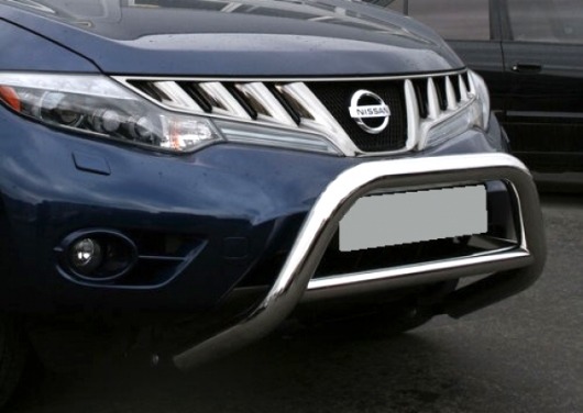 Передняя решетка Nissan Murano (кенгурятник) – это защитная дуга на бампер из нержавеющей стали диаметром 76 мм.