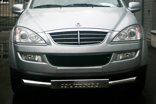 Труба на бампер SsangYong Kyron защищает передний бампер автомобиля от различных механических повреждений при мелких ДТП и неудачных парковках, а также незаменима при езде по бездорожью. А кроме этого, труба на передний бампер Санг Енг Кайрон смотрится очень стильно и эффектно.