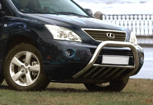 Передняя решетка Lexus RX400 (кенгурятник) – это защитная дуга на бампер из нержавеющей стали диаметром 76 мм.