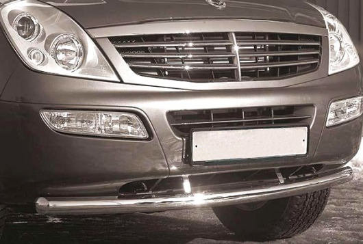 Труба на бампер SsangYong Rexton защищает передний бампер автомобиля от различных механических повреждений при мелких ДТП и неудачных парковках, а также незаменима при езде по бездорожью. А кроме этого, труба на передний бампер Санг Енг Рекстон смотрится очень стильно и эффектно.