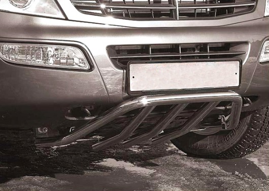 Защита переднего бампера для SsangYong Rexton – это защитная дуга на бампер из нержавеющей стали диаметром 42 мм.