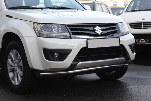 Защита переднего бампера труба Premium предназначена для автомобилей Suzuki Grand Vitara 5D от 2012 г.в. Вам не придется подгонять защиту под размеры бампера вашего авто. И с монтажом проблем не возникнет: установка защиты переднего бампера производится в штатные отверстия, а значит, необходимость сверлить кузов отпадает.