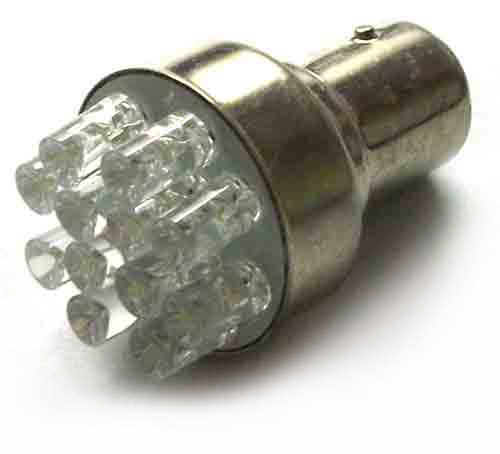 Светодиодная лампа Р21 12Led - двухконтактная лампа, построенная на базе 12 светодиодов LED.  Данная модель гарантирует холодный белый цвет свечения и высокое качество освещения даже самых темных участков дороги.   Такая лампа устанавливается в габариты, подсветку номера, дверную подсветку - туда, куда позволяет цоколь P21. Превосходно сочетается с установленным ксеноновым светом. Кроме того, Вы сможете заменить надоевшие лампы с жёлтым светом.