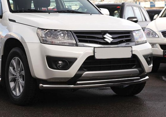 Защита переднего бампера для Suzuki Grand Vitara 5D – это двойная труба на бампер из нержавеющей стали диаметром 60/42 мм.