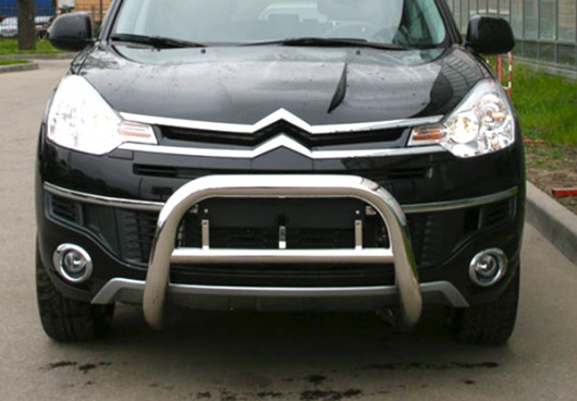 Передняя решетка Citroen C-Crosser (кенгурятник) – это защитная дуга на бампер из нержавеющей стали диаметром 76 мм.