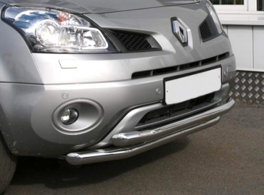 Защита переднего бампера для Renault Koleos – это двойная труба на бампер из нержавеющей стали диаметром 60/60 мм.