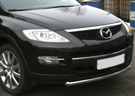 Труба на бампер Mazda CX-9 защищает передний бампер автомобиля от различных механических повреждений при мелких ДТП и неудачных парковках, а также незаменима при езде по бездорожью. А кроме этого, труба на передний бампер Мазда ЦХ-9 смотрится очень стильно и эффектно.