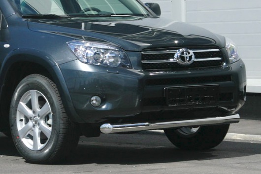Труба на бампер Toyota RAV4 защищает передний бампер автомобиля от различных механических повреждений при мелких ДТП и неудачных парковках, а также незаменима при езде по бездорожью. А кроме этого, труба на передний бампер Тойота РАВ4 смотрится очень стильно и эффектно.