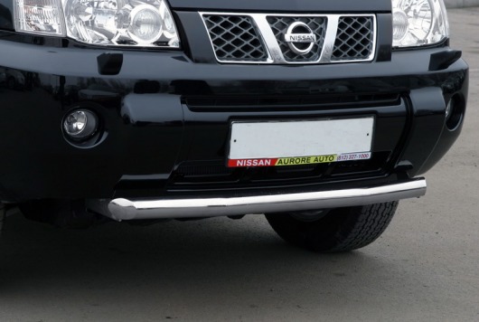 Защита переднего бампера труба предназначена для автомобилей Nissan X-Trail 2004-2007 г.в. Вам не придется подгонять защиту под размеры бампера вашего авто. И с монтажом проблем не возникнет: установка защиты переднего бампера производится в штатные отверстия, а значит, необходимость сверлить кузов отпадает.