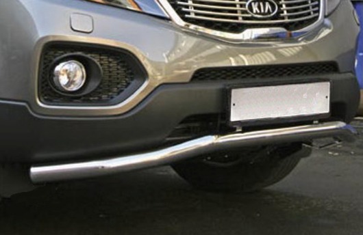 Труба на бампер Kia Sorento защищает передний бампер автомобиля от различных механических повреждений при мелких ДТП и неудачных парковках, а также незаменима при езде по бездорожью. А кроме этого, труба на передний бампер Киа Соренто смотрится очень стильно и эффектно.