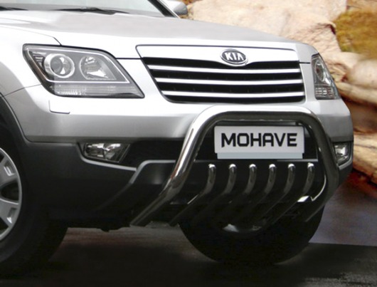 Решетка бампера Kia Mohave надежно защищает передний бампер автомобиля от различных механических повреждений при мелких ДТП и неудачных парковках, а также незаменима при езде по бездорожью. А кроме того, низкий мини-кенгурятник Киа Мохаве смотрится очень стильно и эффектно. Он добавит вашему авто еще больше брутальности и солидности.