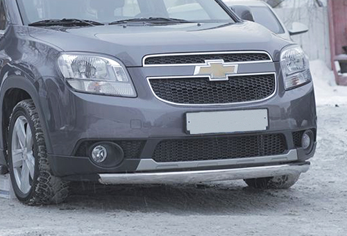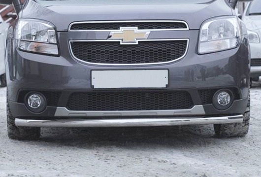 Защита переднего бампера труба предназначена для автомобилей Chevrolet Orlando от 2012 г.в. Вам не придется подгонять защиту под размеры бампера вашего авто. И с монтажом проблем не возникнет: установка защиты переднего бампера производится в штатные отверстия, а значит, необходимость сверлить кузов отпадает.